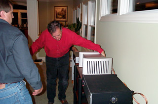 Thats a ridiculous amount of money, but somehow, as I was helping set up these speakers in my living room, I was not at all bothered by the price. Id heard these better my X-1s, so I was convinced of their worth. Peter McGrath, an accomplished recording engineer and one of Wilson Audios setup wizards, assembled and calibrated the X-2s in my living room. Amplification The Halcro dm68 monoblocks (225W into 8 ohms), those ultra-low-distortion super-fidelity amps from Down Under, were my choice to drive the speakers. Halcros matching dm8 line-stage preamp was there to control the volume and source switching. Theres typically a synergy with an amp-preamp combination from the same manufacturer, but there was a greater deciding factor in my choice: Id heard these electronics drive Wilson Audio speakers to magnificent effect at the 2003 CES. There, the combination of Halcro electronics and Wilson MAXXes permanently burned an image in my aural memory. Id heard the MAXXes before, but never quite like this. I knew the Bruce Candy-designed Halcros were weaving magic. The sound at that CES was ethereal yet tangibly real, and I was struck by it -- and by the price: $37,990 per pair for the dm68 amps, $12,990 for dm8 line stage. Philip OHanlon, Halcros North American distributor, ably installed the electronics in the system. Power and cables The power-distribution and cable systems were from Shunyata Research. The $1995 Hydra Model-8, a SoundStage! Innovation in Design award winner, was connected to a dedicated line via an optional Anaconda Alpha power cord ($1995 each), then connected to the other components in the system with a combination of Anaconda Vx ($1995 each) and Diamondback ($175 each) power cords. The latter come standard with Halcro electronics, a testament to the pairings synergy. Speaker cables were the top-of-the-line Constellation Series Andromedas ($2995 per eight-foot pair); the matching Aries interconnects ($650 per one-meter pair), in both RCA and XLR configurations depending on the need, rounded out the system. Grant Samuelsen, Shunyatas national sales manager, ensured that each component was optimally tethered to its neighbor, and that the system AC was powering everything to perfection. Digital My source components were Ed Meitners $9995 EMM Labs DAC6e six-channel DSD converter and a Meitner-modified Philips SACD1000 transport (the modification is $1400; the price of the transport varies, as this model has been discontinued and is available only through the used market). These two components were configured to pass a DSD signal via ST glass optical cable. Youve heard about these components if you follow the audiophile Internet buzz, and Im here to tell you that the superlatives youve heard are true. My digital reference up to this point, the most excellent Esoteric DV-50 universal audio/video player, was trounced in all of ten seconds -- playing SACDs, the improvement in resolution and transparency was mind-numbingly apparent to all in attendance. Playing backup to the EMM Labs-Philips combo was a portable Nagra V digital recorder ($6200) containing, via a hard-disk drive, a selection of Peter McGraths own symphonic recordings. This little fellow holds about 20GB of music and, with its simplicity of use and jewel-like build quality, is easy to get attached to. The grand total for this system exceeded a wallet-rattling $205,000 -- plus shipping! In addition to Grant Samuelsen, Philip OHanlon, Peter McGrath, and me, on hand was fellow SoundStager Anthony Di Marco, flown down from Massachusetts to lend a strong back and a good ear. Among the five of us, we had over a century of experience traversing the cliffs of audiophilia without ropes or safety devices. The plan was to begin setting up The World's Best Audio System on Friday night, finish up on Saturday morning, listen most of the afternoon, and go out for a back-patting meal that night. Everything was accomplished according to schedule and without a hitch, except that we never did make that meal. We couldnt drag ourselves away from what we were hearing. It all must have looked strange to casual observers -- such as my wife, Andrea, and Peters better half, Elizabeth. Here were five grown men, rotating three at a time on a couch, utterly transfixed by a stereo system. We looked mesmerized by what we were hearing. We were. What was all the fuss about? To a greater degree than with any other audio system Ive ever heard, this one "disappeared" into nothingness. There was no noise, no artificial artifacts, no limit in dynamics or scale. Imaging was as ultra-precise as Ive ever heard, but with a life-sized scale that lent credibility to the precision. There was width to the soundstage that extended far out to the sides, and depth seemingly beyond the front wall. The scale was to neck-craning proportions just when the music called for it, but the music could sound delicate and pristine, too -- just like its live counterpart. We listened to Peter McGraths master tapes as well as to a wealth of SACDs. Without fail, the sound beguiled and captivated us. Kodos Mondo Head SACD [Red Ink/Sony 56111] presents an almost perfect example of all the characteristics just described. The various percussion instruments jump from space in a startling exhibition of transient snap, full frequency response, and large-scale dynamics, all from within an immense, continuously rendered soundstage. Things begin delicately on "Daraijin," for example, but grow in intensity, complexity, and scale as the song builds. This system tracked the musical fluctuations perfectly, not miniaturizing the subtleness or, conversely, compressing the dynamics. Effortless is a term often used in describing the sound of a good hi-fi. The World's Best Audio System set a new standard in my book. Andrea Bocellis sheer vocal presence on "Resta Qui" (Cieli Di Toscana on SACD [Sugar/Polydor 314 589 813-2]) was palpable and haunting. If midrange faithfulness is the ultimate litmus test,