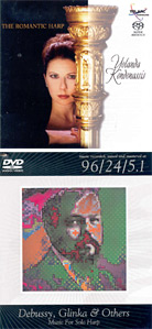 The Romantic Harp I have found that recordings of solo instruments often make the best test records. All is exposed, naked audio as it was, with no place to hide. The harp has often sounded good on analog recordings, a little less so on CD. On these two high-resolution recordings, the harp sounds as if it has been transported into your listening room. Talk about realism all you want, but it is impossible to imagine a symphony orchestra actually being in your living room; there simply isn't the space. However, it is realistic to imagine a harpist sitting about ten feet in front of you, and each of these recordings gives that illusion. The Roncea recording is a little more defined, especially the lower register; the Kondonassis sounds somewhat veiled by comparison. The slight difference could be the player, the recording hall, the use of the center-channel speaker (AIX seems to put more confidence in it), or simply my different SACD and DVD-A players. Both discs offer first-rate sound, impeccable playing, and imaginative programming, though only the Telarc has informative notes. The AIX discs liner notes do not even have a biography of Ion Ivan Roncea. This is a shame and gross oversight, because he is apparently one of the worlds great harpists. Since one disc is DVD-A and the other SACD, many people will have to make a choice, but given a universal player, I would want both of these discs in my collection. Plucked instruments benefit greatly from advanced-resolution sound. The stereo tracks are clean as can be. The multichannel surround tracks on each recording are used sparingly and do not call attention to themselves. But what presence a discreetly used surround track can add! These two recordings prove it.